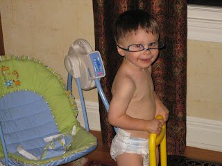 Tyler having fun after carving. He wouldn't get dressed, but he is stylin' in Grandma's reading glasses (upside down of course)!
